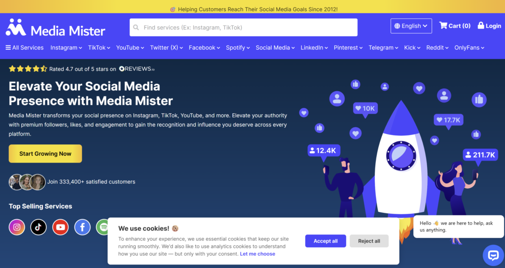 Media Mister offers Instagram followers alongside likes, views, and comments. They cover over 50 social platforms with a focus on quality and retention.